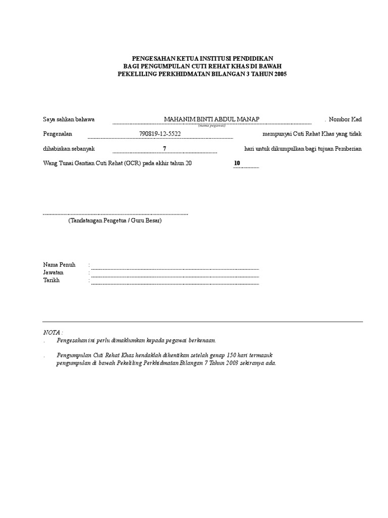 Related : Pekeliling Perkhidmatan Bilangan 7 Tahun 2003 - Pekeliling Perkhidmatan Bilangan 5 Tahun 2013 : Download pekeliling perkhidmatan bil7 2003 mengumpul cuti rehat..